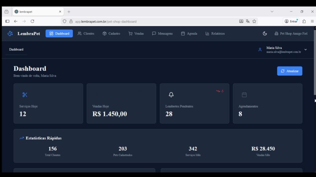 A maioria dos sistemas mostra somente o que já aconteceu. O LembraPet foi criado para mostrar principalmente o que está prestes a virar receita.